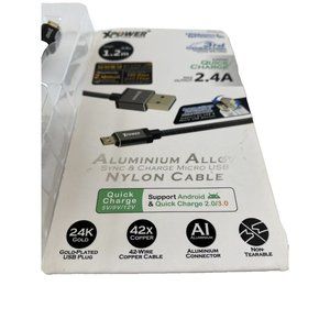 The Xpower Aluminum Alloy Sync & Charge Micro USB Nylon Cable is a premium quality phone charger designed for Android cell phones. The cable is gold-plated and features an aluminum finish, making it both durable and stylish. This charging cable comes with a micro-USB connector and is perfect for syncing and charging your Android device. The nylon material ensures that the cable is tangle-free and long-lasting. With its sleek design and high-quality construction, this Xpower phone charger is a must-have accessory for anyone looking for a reliable and stylish charging solution.