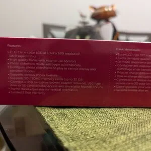 The compact design of the frame makes it perfect for small spaces. Sharing photos with family and friends has never been easier. Simply connect a USB flash drive or an SD card into the frame and view your photos in slideshow mode automatically.