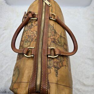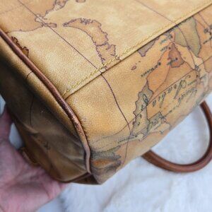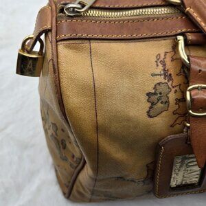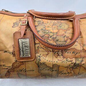-Iconic and stylish, this Italian-crafted bag features the brand's signature world map print on durable coated canvas with elegant tan leather trims.