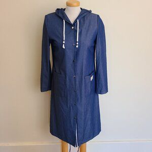 Alvina Long Hooded Lightweight Blue Trench Coat