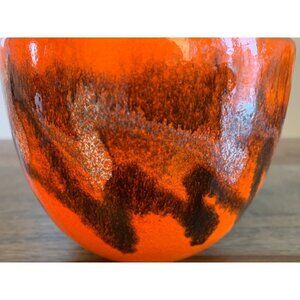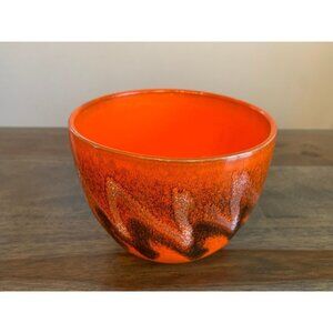 Amazing and one of a kind bowl by Alvino Bagni. The striking red color borders on the orange and it has a black and white zigzag design. It is a wonderful MCM piece.