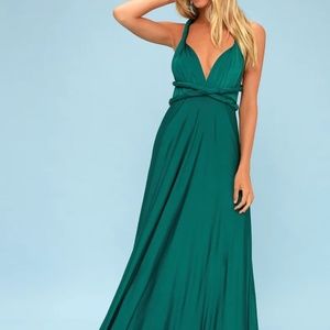Lulus Exclusive! Any which way you wrap it, the Lulus Always Stunning Convertible Emerald Green Maxi Dress is one amazing dress! Two, 82" long lengths of fabric sprout from an elastic waistband and wrap into dozens of possible bodice styles including halter, one-shoulder, cross-front, strapless, and more. Stretchy emerald green fabric has a satiny sheen, and a full length maxi skirt pairs perfectly with any choice you make up top. Want Styling Tips? See How To Wear It!