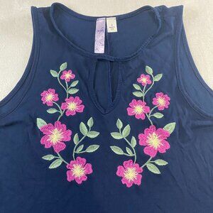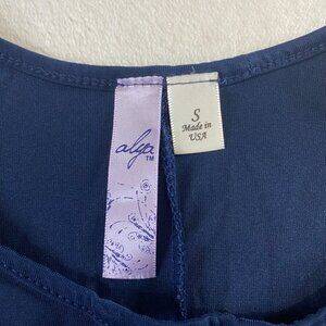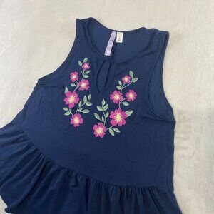 Alya Navy Blue Embroidered Flower Dress Top Modal Blend Made In USA