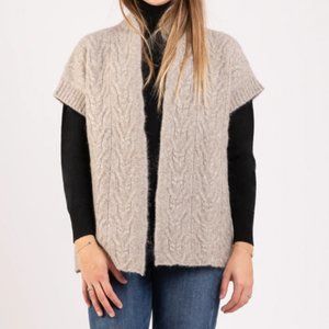 Alysi Soft Shortsleeved Cable-knit Cardigan, Beige, Size S