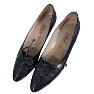 Amalfi Italian Black Leather Oxford Retro Mod Quiet Luxury Heels 9.5 Narrow