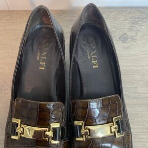 Amalfi by Rangoni Brown Faux Crocodile Loafers with Gold Accent buckle - 9