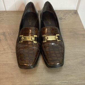 Amalfi by Rangoni Brown Faux Crocodile Loafers with Gold Accent buckle