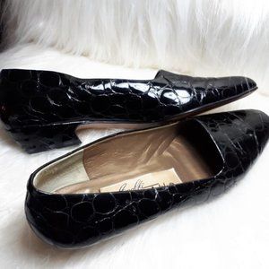 Beautiful pumps in shiny black snake skin design. Made in Italy by Amalfi. Size 8AAA . Excellent condition