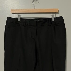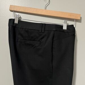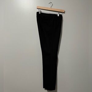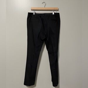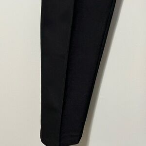 Like new condition. Solid black cotton/ polyester/ spandex blend. Front pockets, stitched closed. Belt loops. Zipper fly with hook & button closure.