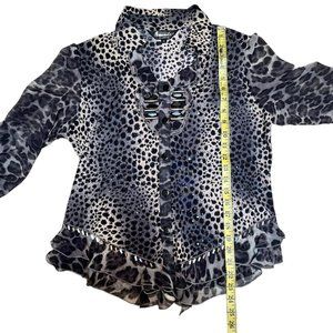 Amanda Collection Black and Cream Leopard Print Blouse Women's Size M