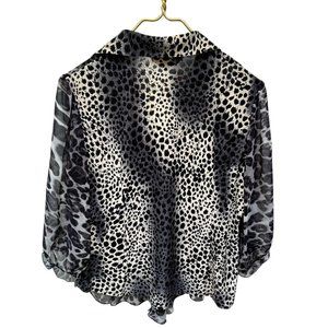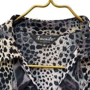 Amanda Collection Black and Cream Leopard Print Blouse Women's Size M.