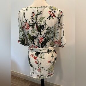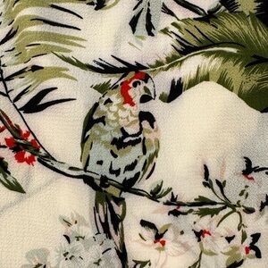 Amanda Green Jungle Bird Floral Leaf Print Top Blouse Tunic Style with Belt Extra Large