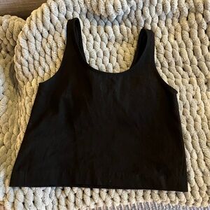 Made in Canada black cotton vneck tank. Boxy crop fit. Deep black. No flaws.