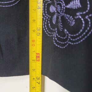 Brand New Amanda Smith Black Embroidered Purple & Floral Design Cocktail Knee Length Short Sleeve Shift Dress Business Casual Size 10 NEW With Tags