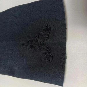 This beautiful black linen pull over features sculpture designs on sleeves and front.