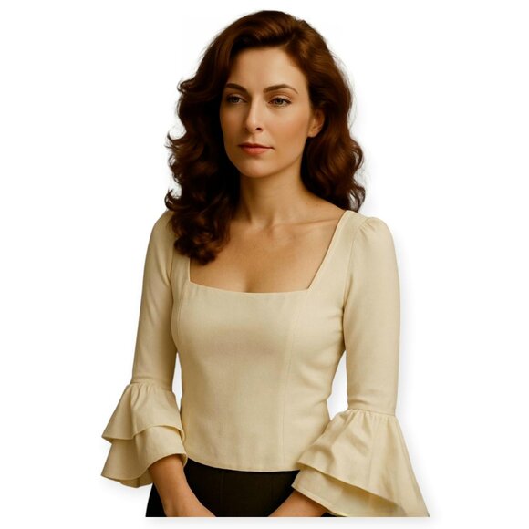Elegant cream Amanda Uprichard top featuring a square neck and statement sleeves, perfect for elevating any ensemble.