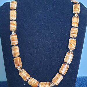 Amazing Vintage Art Deco Brown Agate Glass Beaded Hand Knotted Necklace