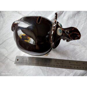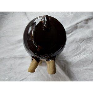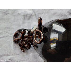 Amazing studio pottery moose piggy bank dark brown with blue eyes