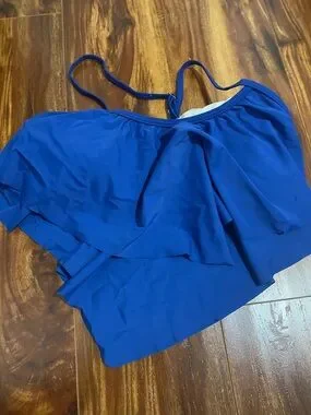 Amazon Blue Ruffle Swim Top