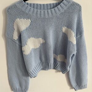 Chic blue sweater with white patterns. Ideal for casual wear.
