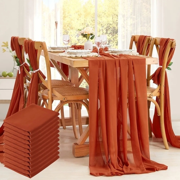 Enhance your dining experience with this elegant rust table runner set. Perfect for home parties and gatherings.