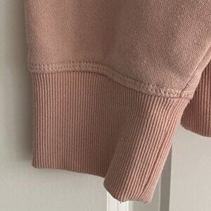 Soft and cozy blush pink crewneck sweatshirt from Amazon Essentials. Features ribbed cuffs and hem, warm fleece interior, and classic pullover fit.