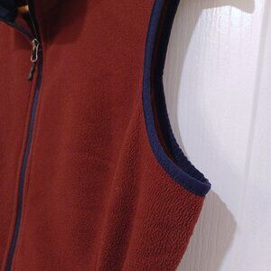 Perfect fleece vest for spring or fall! Rich burgundy with navy accents and trim. In absolutely fantastic condition, I never actually wore this one.