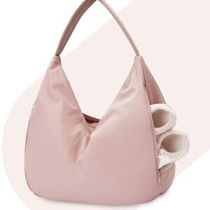 Great gym tote, has shoe compact, wet pocket for damp clothes/swimsuits/towels, zip pocket at the front & side pocket with drawstring for water bottles, umbrellas etc.