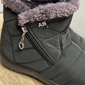 Amazon Winter Snow Ankle Boots Black Faux Fur Lined Side Zippers Lightweight 9
