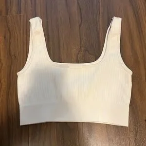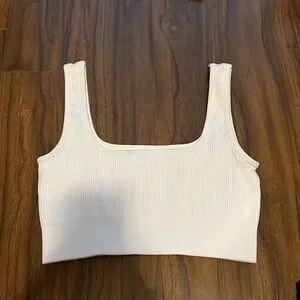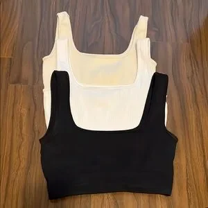 Amazon 3 pack ribbed tanktop (cropped tops more like a bra top). All size small. Brand on Amazon is OQQ. In good condition. Colours are white, black and cream