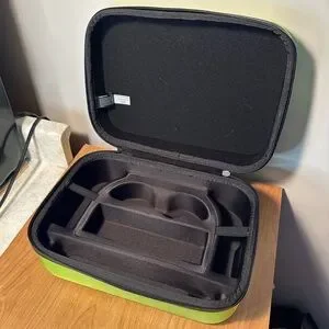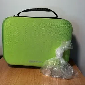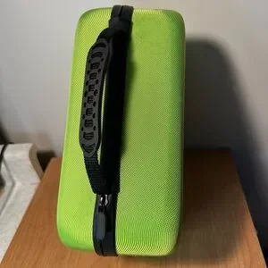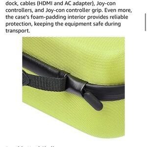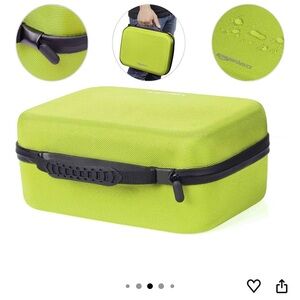 Vibrant neon green/yellow hard shell case for the Nintendo switch, by AmazonBasics. Durable and stylish for storage needs.