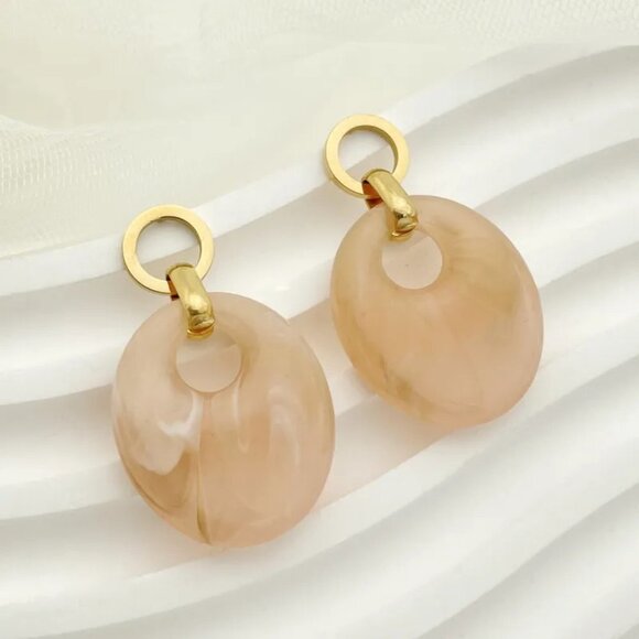 Amber Acrylic Oval Geometric Drop Earrings