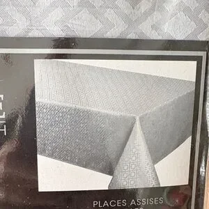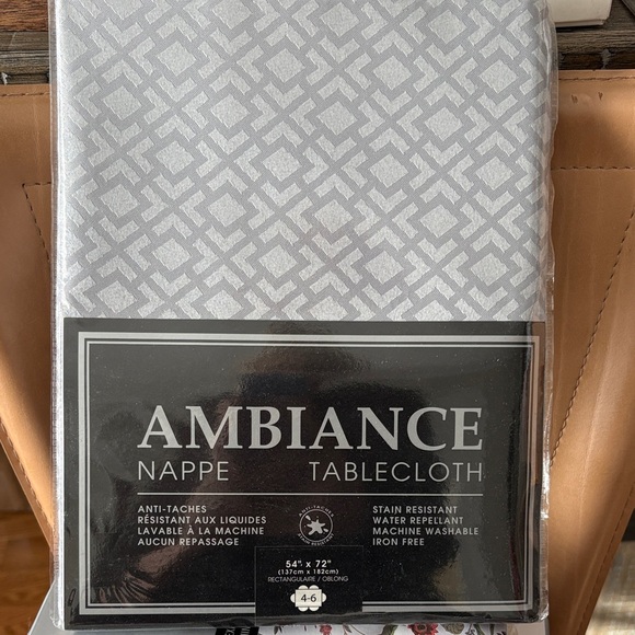 Elevate your dining with the Ambiance tablecloth. Features a stylish silver pattern. Easy care and water repellent.