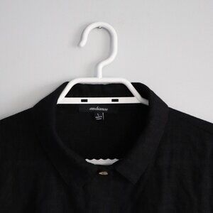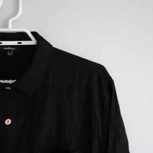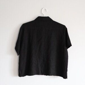Ambiance Women's Black Sz Lrg Buttoned Linen Collared Short Sleeve Blouse Top