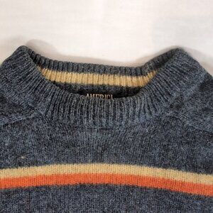 America 100% Wool Striped Knit Sweater Blue Orange Long Sleeve Men's S Small