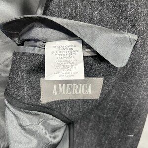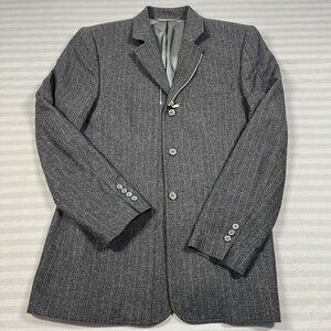 America Blazer Mens S Gray Pinstripe Wool Blend 3 Button Zip Insert Sport Coat