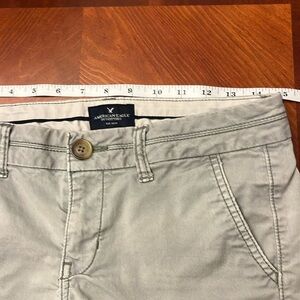 America Eagle Women’s Green Midi Chinos. Slim fit, low rise and a slightly longer inseam for more coverage.