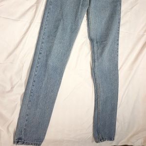 Vintage-inspired denim is strong, durable fabric with vintage-inspired, high-ridge twill, pocket distress fade, high rise, slim fit, light blue, and long.