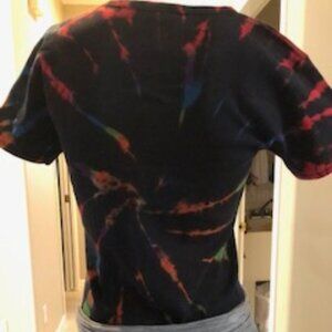 American Apparel Tie-Dye 100% Cotton Short Sleeve Crew Neck T-Shirt in Black with Hit of Multi-Colors