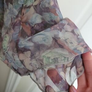 Women's floral chiffon double layered skirt above the knee by American Apparel with elastic waist. More photos coming soon. Very good used condition.
