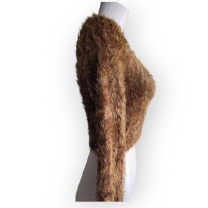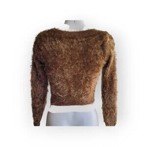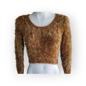American Apparel Cali Sun & Fun Fuzzy Crop Sweater in caramel, featuring a soft and stretchy eyelash knit. Perfect for adding a touch of warmth and style to your outfit.