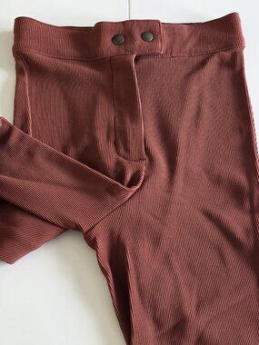American Apparel Riding Pant M Rust Brown Ribbed Equestrian High Rise Stretch