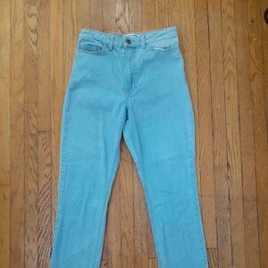 Barely ever worn. Maybe a few times. Color is most accurate to first picture. It's like a pale blue, classic light denim color. Size 28, but def closer to a 26! You know how American Apparel always sizes weird...