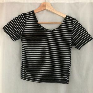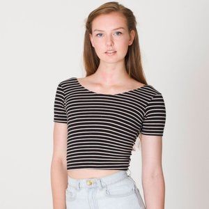 American Apparel black and white striped cotton spandex short sleeved crop top in perfect condition.