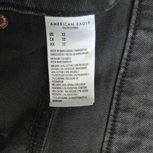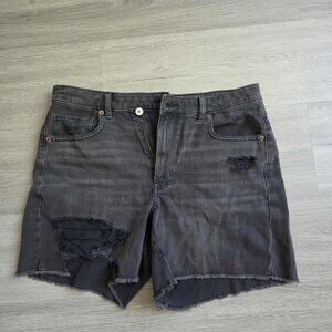 American Eagle AE Denim Highest Waist Baggy Short Sz 12 Faded Black Ripped