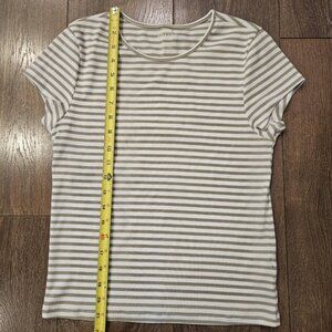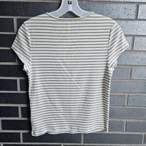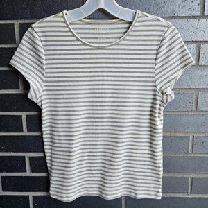 American Eagle AE Fitted Soft White & Sage Green Short Sleeve Striped Top Size L