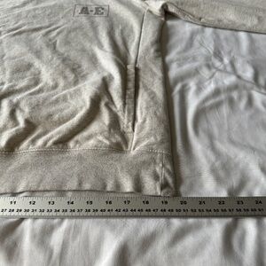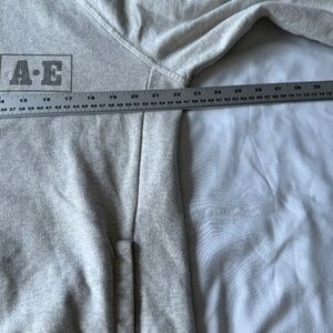 American Eagle AE Men's Long Sleeve Pullover Hoodie Cream Medium Spell-Out Arm