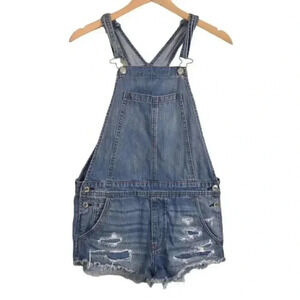 American Eagle AE Shortalls Ripped Distressed Bib Overalls Jeans Blue Size Small