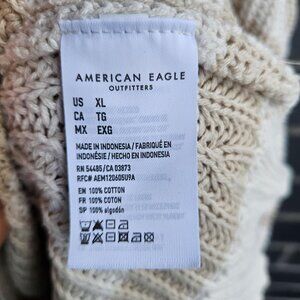 American Eagle AE Women's Cream & Tan Striped Long Sleeve Knit Sweater Size XL