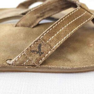 American Eagle AEO beige suede flip flop sandals